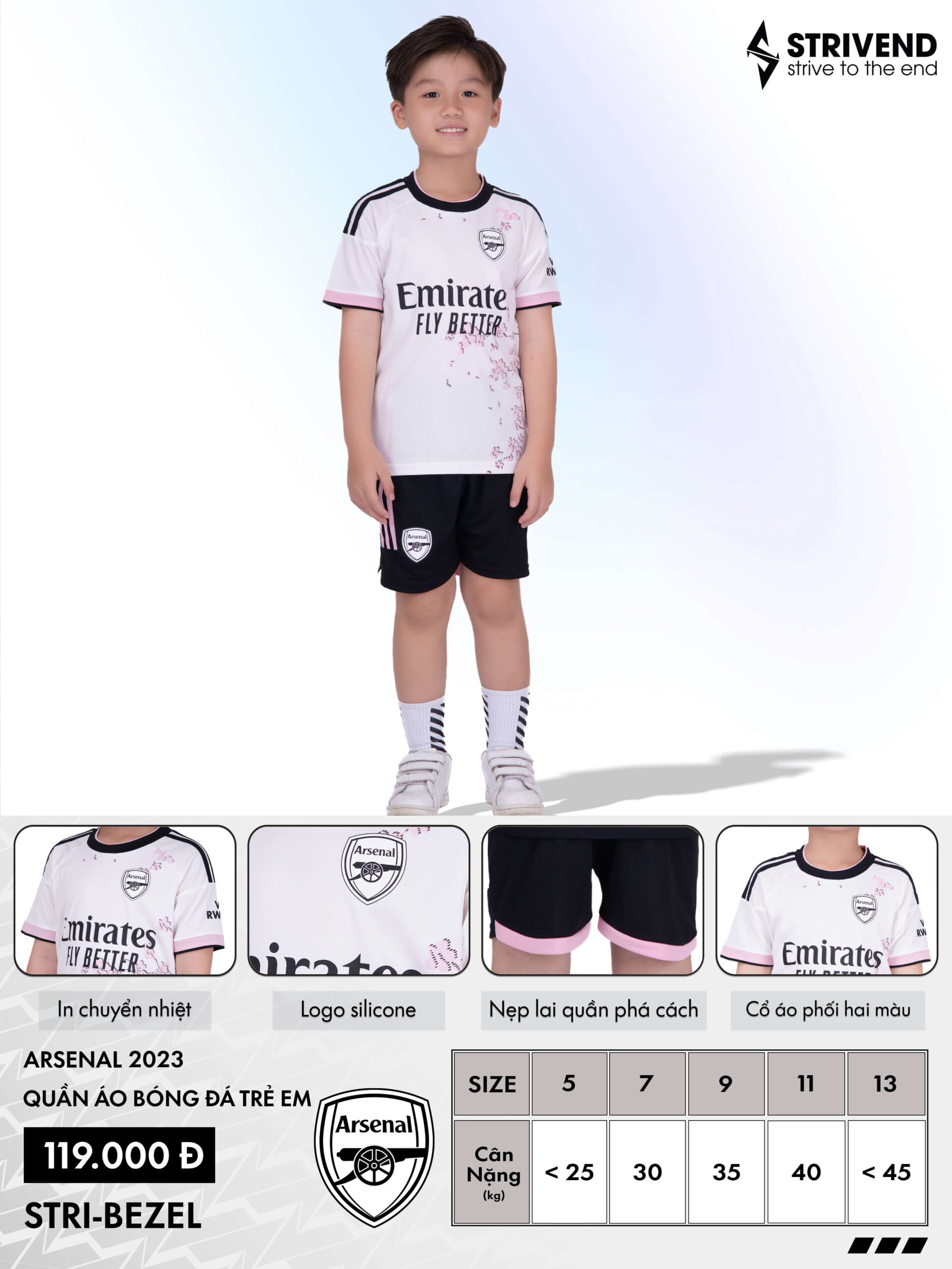 Hướng dẫn chọn size khi mua Kid CLB Strivend Arsenal Hoa Anh Đào SS24: