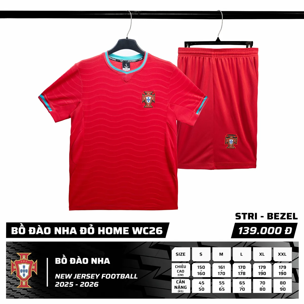 Bộ Quần Áo Bóng Đá Bồ Đào Nha Đỏ Home WC26