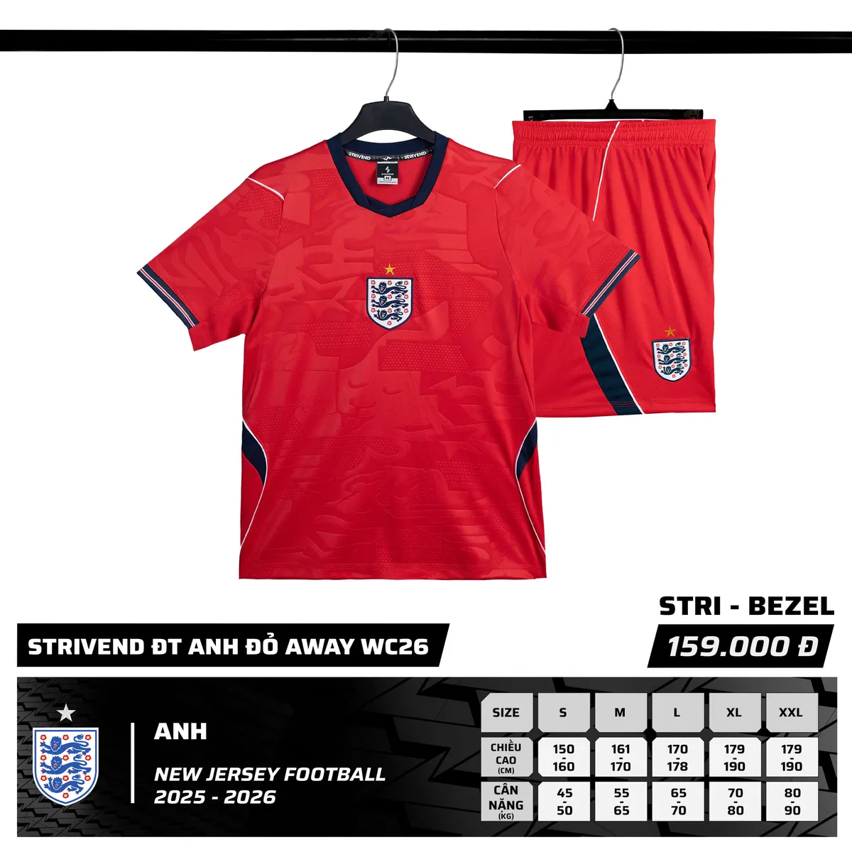 Bộ Quần Áo Bóng Đá Strivend Anh Đỏ Away WC26