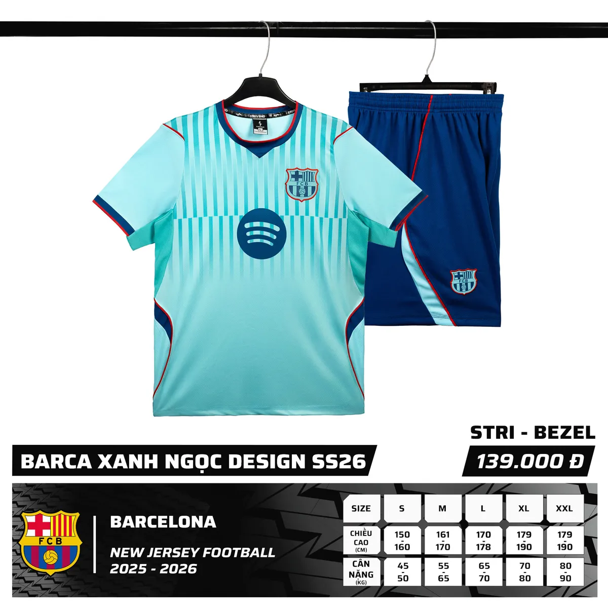 Bộ Quần Áo Bóng Đá Strivend Barcelona Xanh Ngọc Design SS26