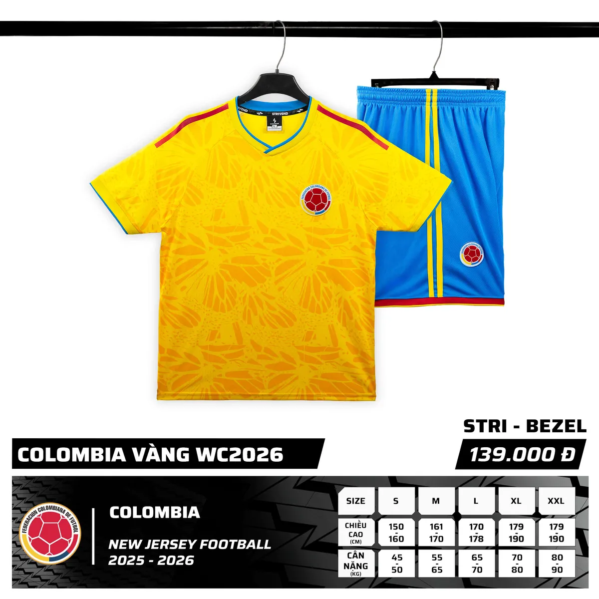 Bộ Quần Áo Bóng Đá Strivend Colombia Vàng là mẫu áo bóng đá WC mới đến từ Strivend để cùng anh chuẩn bị cho một mùa WC 2026 cuồng nhiệt sắp tới.