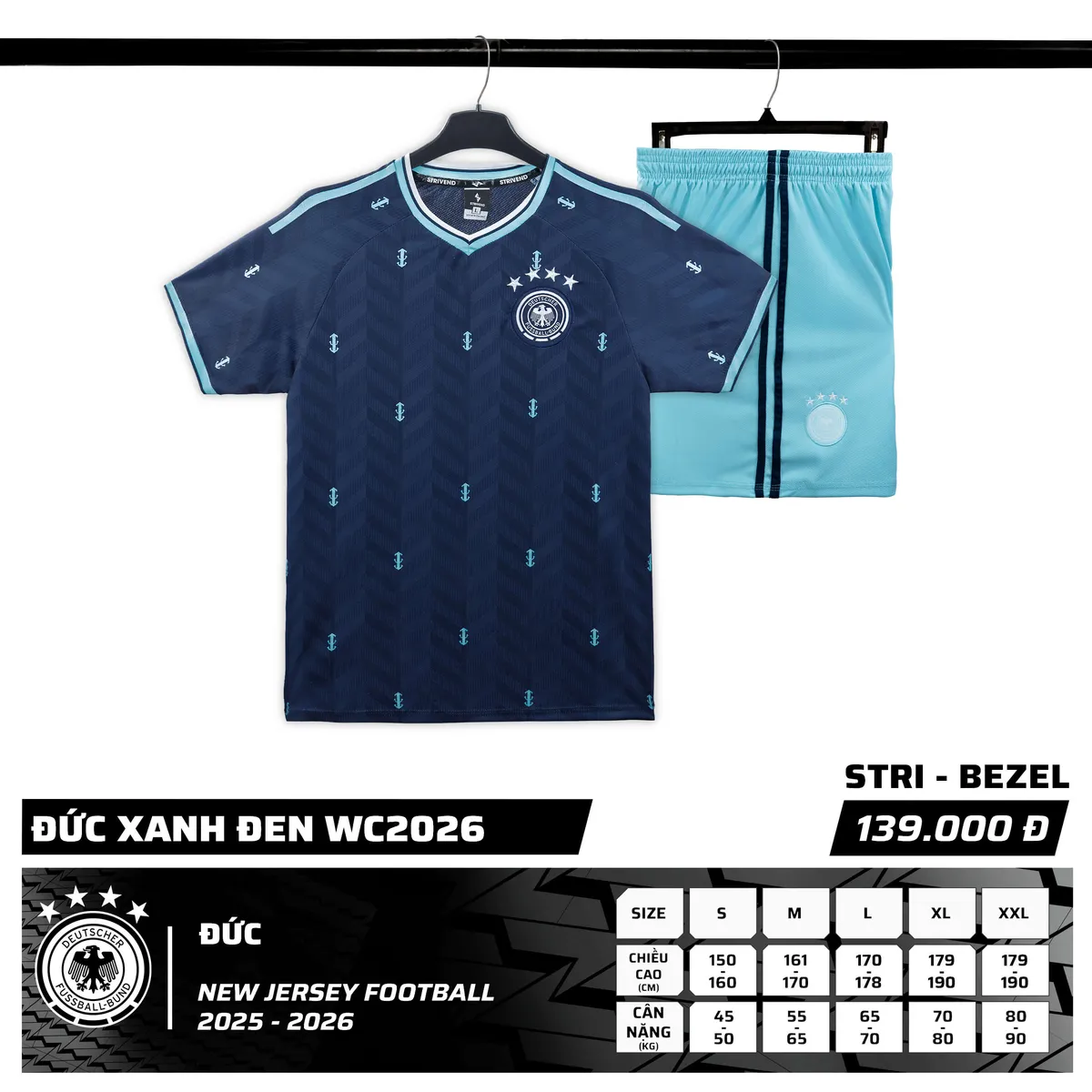 Bộ Quần Áo Bóng Đá Strivend Đức Xanh Đen WC2026 là mẫu áo bóng đá WC mới đến từ Strivend để cùng anh chuẩn bị cho một mùa WC 2026 cuồng nhiệt sắp tới.