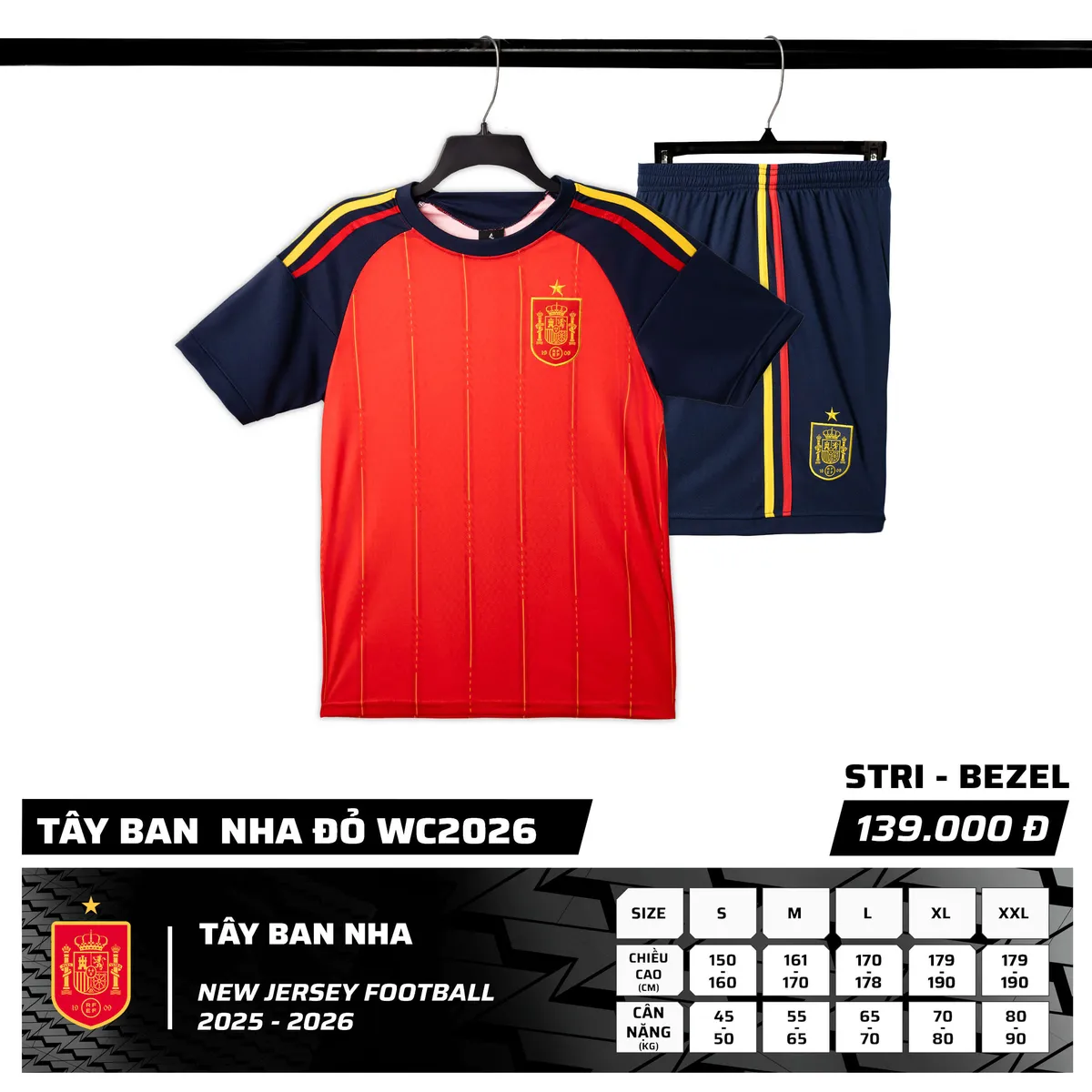 Bộ Quần Áo Bóng Đá Strivend Tây Ban Nha Đỏ Home WC2026 là mẫu áo bóng đá Jersey mới đến từ Strivend được thiết kế mới lạ phù hợp với phong cách thường ngày Stress Style.