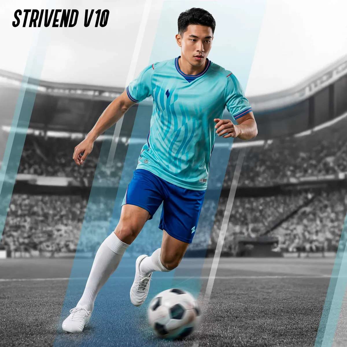 Strivend V10 Ngọc là mẫu quần áo bóng đá thiết kế mới nhất đến từ Strivend, lấy cảm hứng từ những vệt lửa năng lượng mô phỏng chuyển động liên tục trên sân cỏ – biểu trưng cho tinh thần không lùi bước, luôn lao về phía trước dù áp lực bủa vây.
