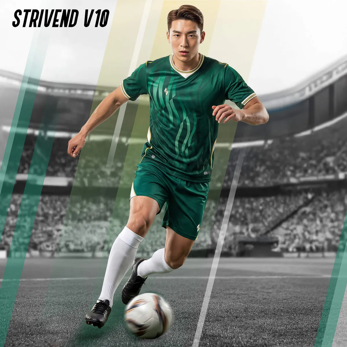 Strivend V10 Xanh Rêu là mẫu quần áo bóng đá thiết kế mới nhất đến từ Strivend, lấy cảm hứng từ những vệt lửa năng lượng mô phỏng chuyển động liên tục trên sân cỏ – biểu trưng cho tinh thần không lùi bước, luôn lao về phía trước dù áp lực bủa vây.