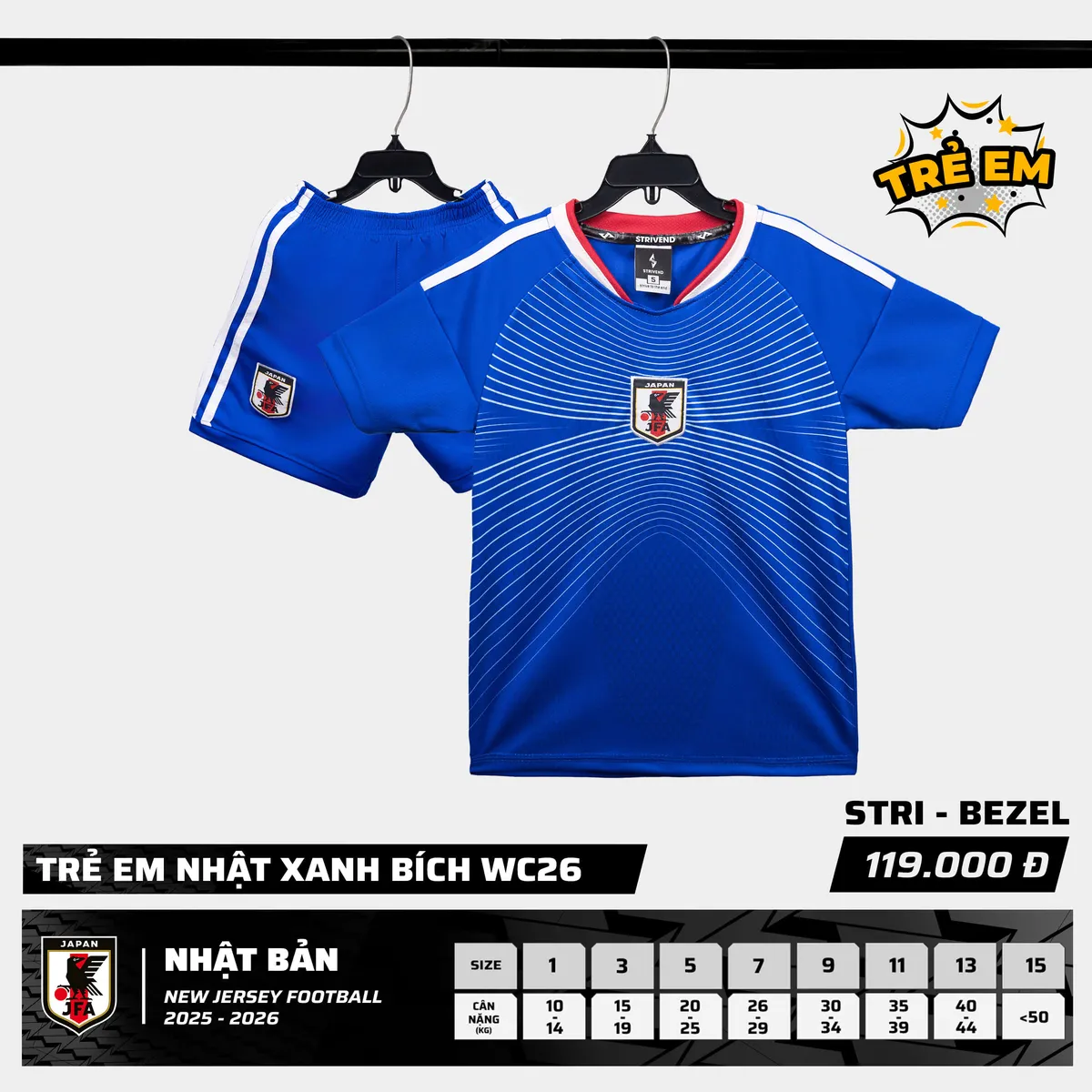 Bộ Quần Áo Bóng Đá Trẻ Em Strivend Nhật Bản Bích Home WC2026 là mẫu áo bóng đá WC mới đến từ Strivend để cùng Bé chuẩn bị cho một mùa WC 2026 cuồng nhiệt sắp tới.