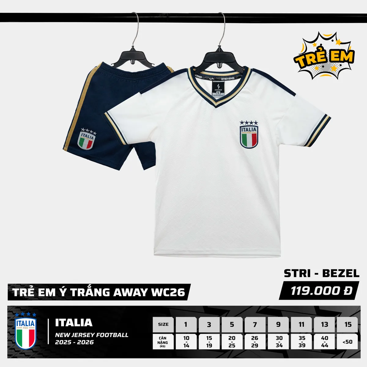 Bộ Quần Áo Bóng Đá Strivend Ý Trắng WC26 là mẫu áo bóng đá WC mới đến từ Strivend để cùng anh chuẩn bị cho một mùa WC 2026 cuồng nhiệt sắp tới.