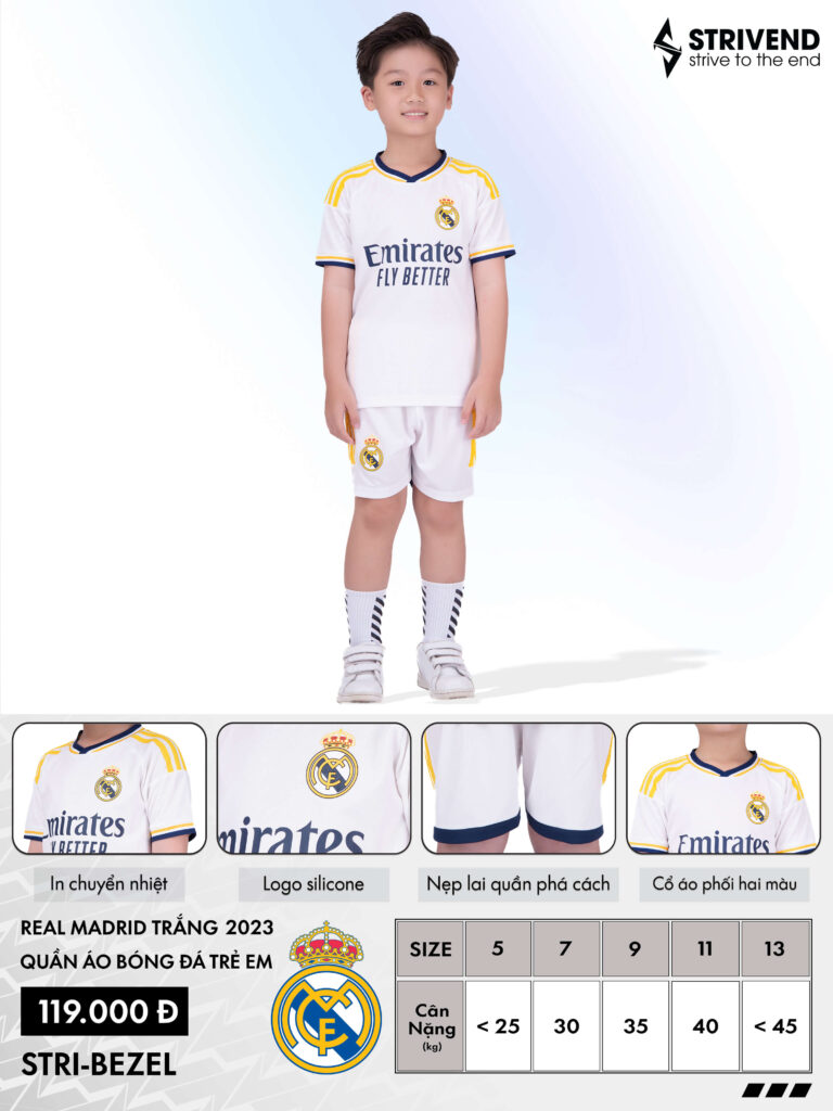 Đánh giá Bộ Quần Áo Bóng Đá Kid CLB Strivend Real Madrid Trắng SS24