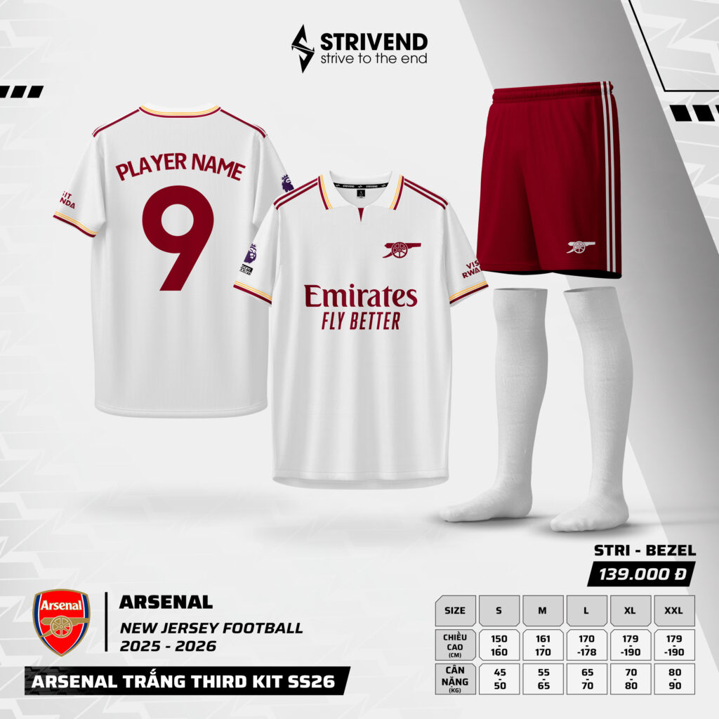 Đánh giá Bộ Quần Áo Bóng Đá Strivend Arsenal Trắng Third Kit SS26