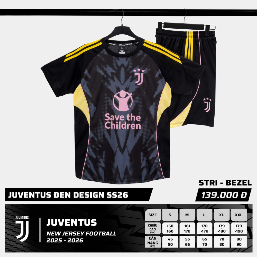 Bộ Quần Áo Bóng Đá Strivend Juventus Đen Design SS26