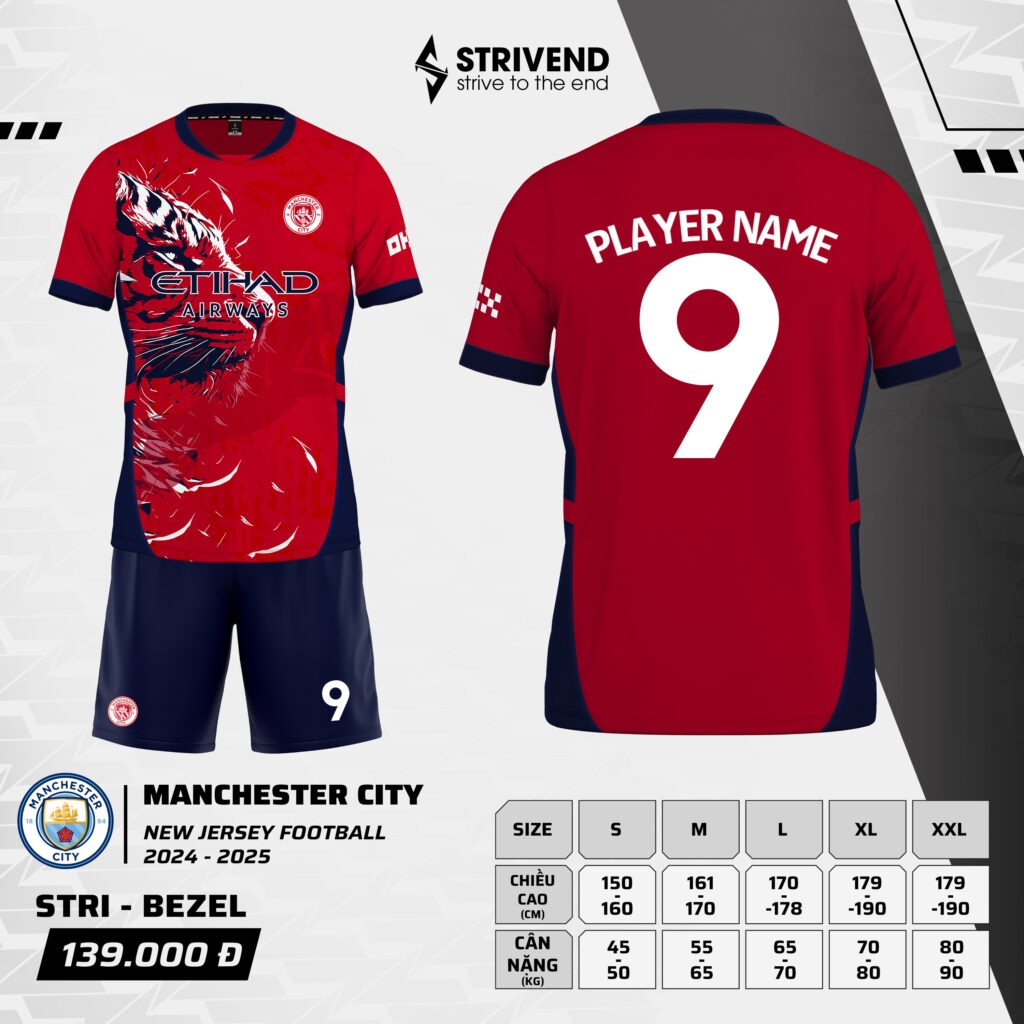 Mẫu Áo Bóng Đá Strivend Manchester City Đỏ 24/25