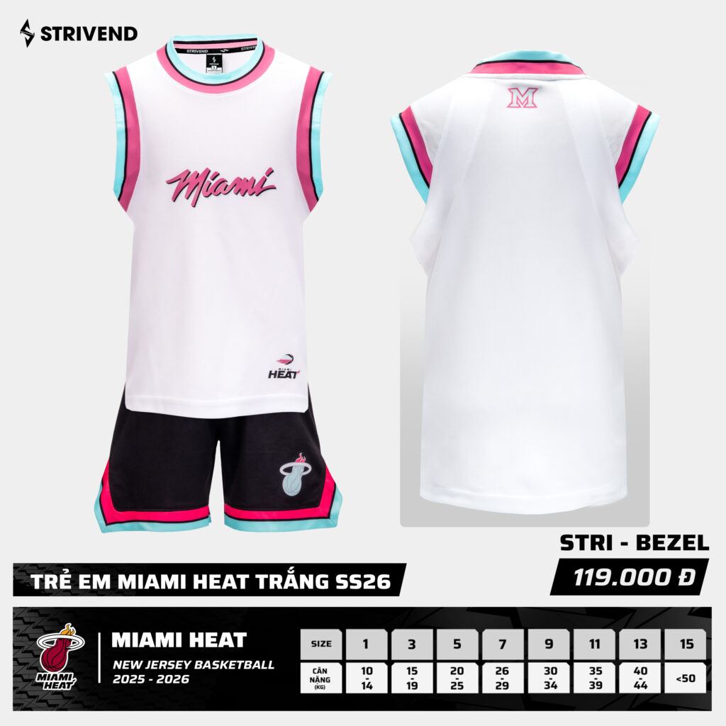 Bộ Quần Áo Bóng Rổ Strivend Trẻ Em Miami Heat Trắng
