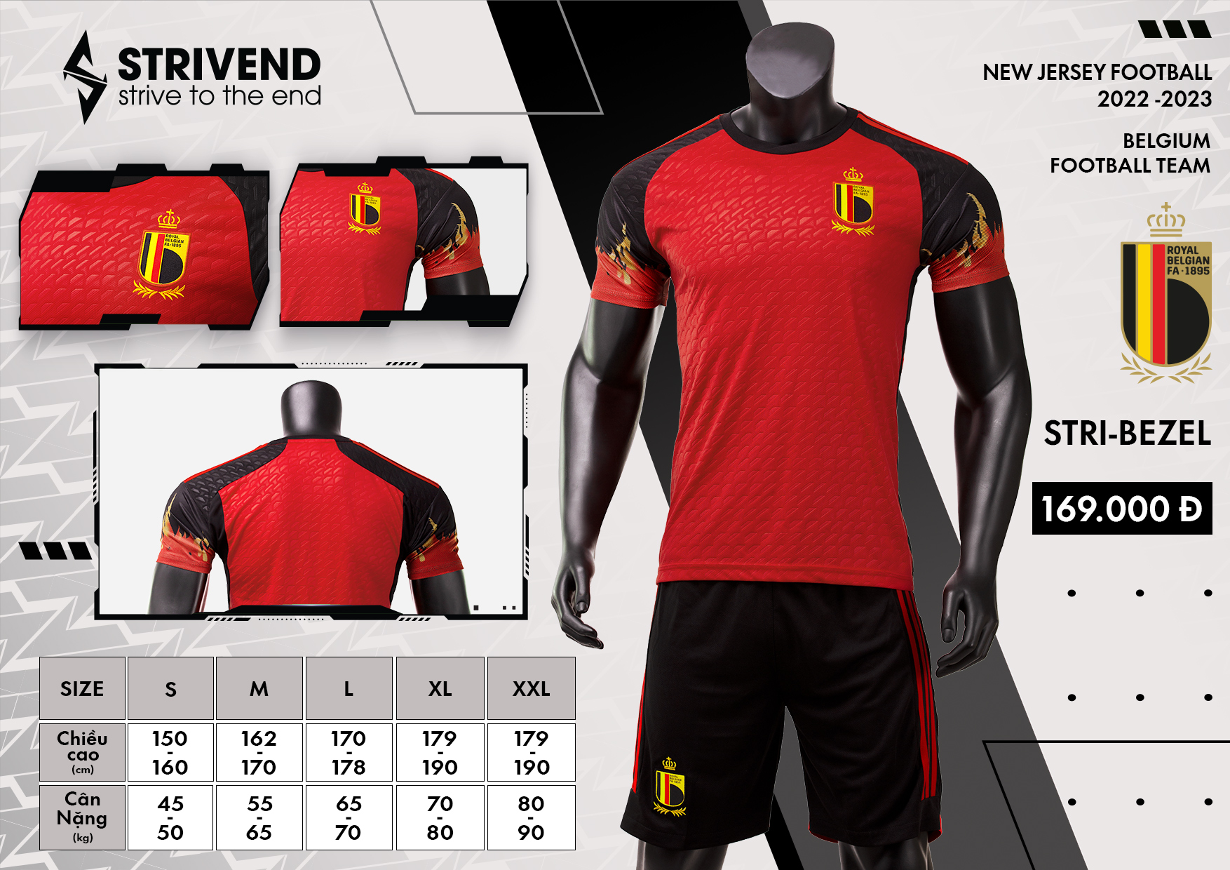BST Quần áo bóng đá Strivend Bỉ Đỏ WC22 là 1 trong 9 mẫu CLB và Đội Tuyển mới nhất mùa giả 22-23 chính hãng Strivend
